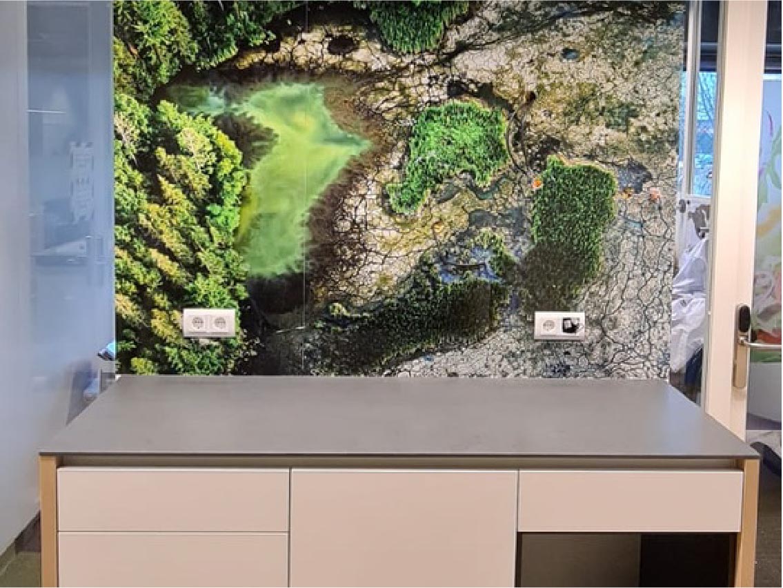 Naadloos, krasvast en eventueel waterafstotend. Wij hebben allerlei oplossingen. Ontwerp uw eigen wanden met eventueel een bedrijfslogo, uniek design of een inspirerende afbeelding. Voorzie iedere wand van een unieke uitstraling. Natuurlijk in uw showroom en vergaderruimte. Maar wat denkt u van de entree of het bedrijfsrestaurant? Dit zijn de plekken om de wanden te laten spreken. UV-licht bestendig en brandcertificering.